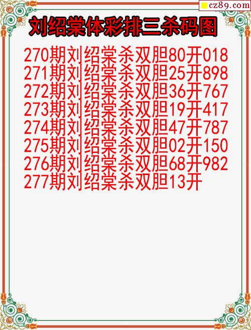 > 25年277期刘绍棠体彩排三杀码图
