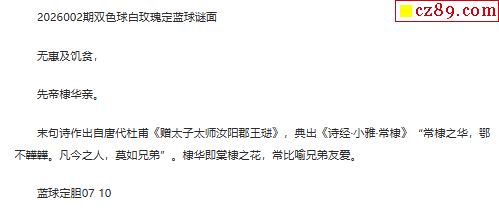 > 26年福彩双色球002期 白玫瑰定蓝球字谜